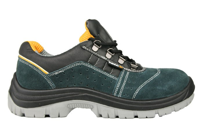 VESPER SLG S1 sunt pantofi de lucru confortabili din piele intoarsa neagra si verde cu fire portocalii si sireturi negre si portocalii. Au clasa de protectie S1 si indeplinesc cerintele standardului SRC PN EN ISO 20345 Pantofii au o talpa injectata cu doua tipuri de PU, ceea ce asigura proprietati optime de amortizare si anti-alunecare pe diverse tipuri de suprafete, precum beton, gresie sau placi. În plus, talpa este rezistentă la ulei și antistatică. Căptușeala interioară a pantofilor VESPER SLG S1 este realizată din material care absoarbe energie în zona călcâiului, ceea ce îmbunătățește confortul de utilizare. Pantofii sunt echipati cu un capac metalic care protejeaza degetele de la impact.