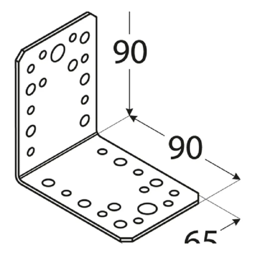 Coltar Lemn 90x90x65x2.5mm neramforsat, cu o grosime a tablei de 2.5mm pentru o rezistenta mare la indoire. Ofera o fixare sigura si stabila a structurilor din lemn, mobilier de gradina sau alte constructii din lemn, placi OSB sau Pal, etc. Coltarele pentru lemn au o gama larga de intrebuintare, datorita gaurilor bine gandite si care corespund normelor Europene. Prevazut cu gauri cu 3 diametre diferite, pentru orice tip de surub. Gaurile mici au un diametru de 5mm, gaurile medii au un diametru de 7mm, iar gaurile mari un diametru de 11mm. Coltarele pentru lemn pot fi utilizate foarte usor, atat de profesionisti in domeniul constructiilor cat si de micii meseriasi care executa lucrari tip hobby.