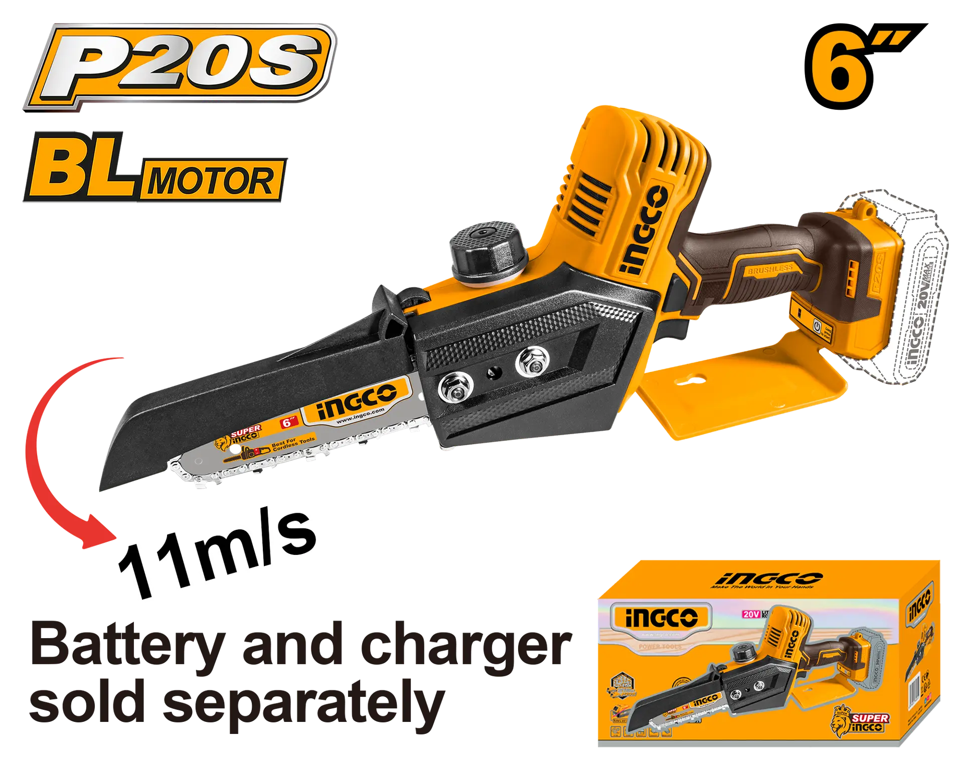 🔹 Specificații tehnice • Tensiune: 20V • Lungime lamă: 15cm (6") • Viteză lanț: 11 m/s • Capacitate rezervor ulei: 70 ml • Greutate: 1,6 kg • Motor: fără perii (brushless) • Vizor nivel ulei • Construcție solidă