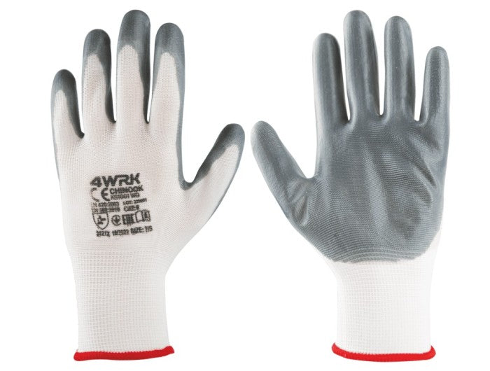 Mănușile din poliester alb Chinook sunt acoperite cu un strat subțire de nitril gri. Sunt perfecte pentru lucrări generale, de service, de asamblare și mecanice, precum și în industriile de producție, construcții și logistică. Se caracterizează prin rezistență ridicată la abraziune și rupere. Materialul mănușilor este flexibil, așa că se adaptează perfect formei mâinii.