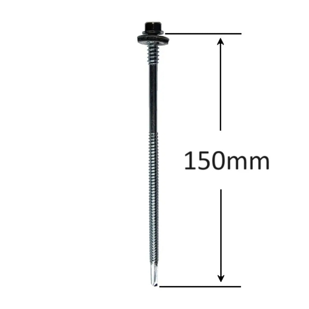 Surub Panou Sandwich 150mm Zincat Cu Saiba EPDM, tratat termic. Surubul are capul cu finisaj lucios si este realizat din otel zincat, material rezistent la coroziune. Are o capacitate de perforare de 12 mm si diametrul de pregaurire de 4.5mm. Capul hexagonal este deosebit de important în cazul conexiunilor în care strângerea șurubului este dificilă. Datorita varfului autoforant, nu necesita pregaurire.