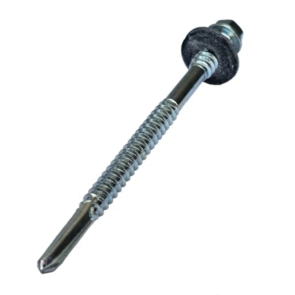 Cutie cu 50 buc – Surub Panou Sandwich 200mm Zincat prevazut cu saiba EPDM si diametrul de 5.5/6.3mm, confectionat din otel carbon electrogalvanizat cu garnitura EPDM din cauciuc si saiba din otel., cu antrenare hexgon de 8mm, ce sunt utilizate in general pentru fixarea panourilor sandwich pe structuri metalice. Aceste suruburi au o capacitate mare de perforare, de 15mm. Surubul autoforant ofera o suprafata mare de contact, oferind o fixare sigura si stabila a panourilor sandwich.